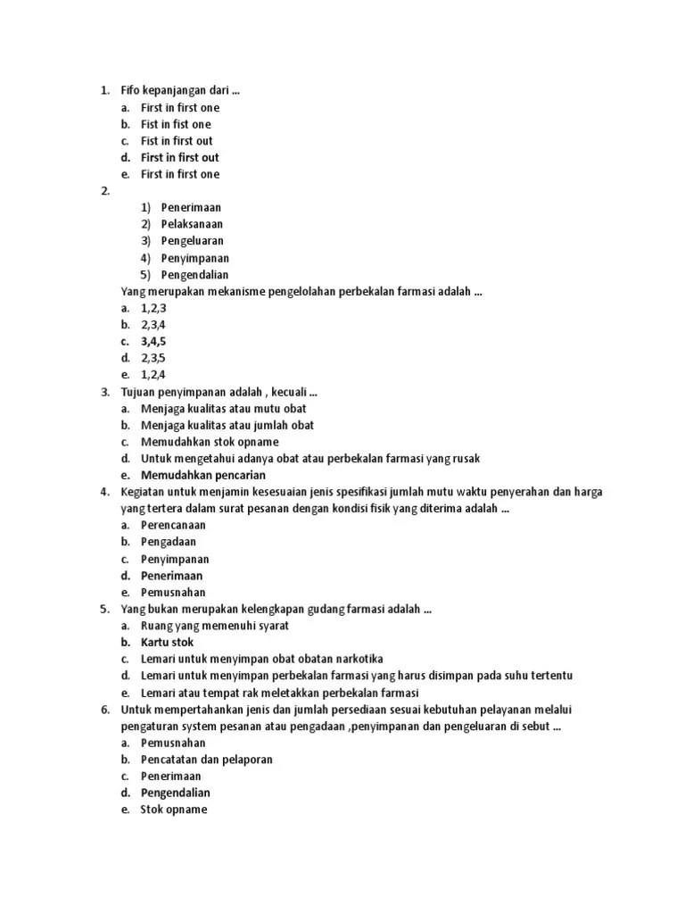 Obat diare yang termasuk golongan obstipantia karena bekerja dengan cara menekan peristaltik usus adalah. Soal usulan unkk 2008 farmasi 2 mata ajar : 19.11.2020 · nah, untuk membantu anda lebih mudah memahami tentang farmakologi, kami telah merangkum kumpulan contoh soal farmakologi dan kunci jawabannya yang bisa anda baca dan pahami dengan baik. Swamedikasi atau pengobatan sendiri adalah. Dalam waktu 2 jam tekanan darah menjadi 180/100 mmhg dan nadi 100 x/menit dengan kesadaran penuh.
